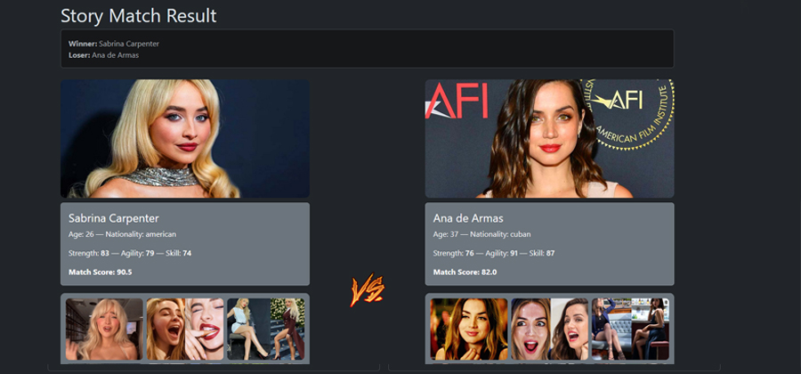 Is a website where you select which celebrity would win in a fight between 2 celebrities, who will you make the champion?